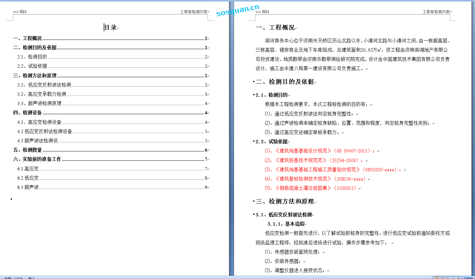 当前位置: 首页资料范例材料检测正文 工程桩检测方案,WORD格式1篇 打包下载 http://gczly1314.com/1977.html 须知 1资料收集于互联网,站内视频、图文、文字仅供交流学习使用。如侵犯到您的合法权益,请联系本站处理。 在手机上访问本站时,仅可以浏览内容,如需下载资料,请在电脑浏览器输入网址:sosquan.cn进行访问下载,资料默认解压密码为1 2资料众多无法保证资料其适用性,资料实例用于参考学习,学会变通,万变不离其宗,省时省力,助你快速提升! 3由于本站收录资料众多,有个别资料可能出现重复,请悉知。 4如有问题及时联系QQ:806096373处理 方案桩检测 收藏 链接