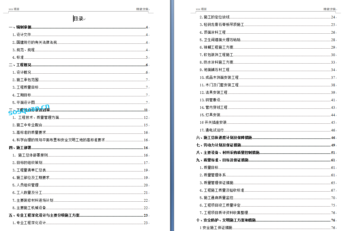 当前位置: 首页方案大全技术方案正文 精装修施工方案,WORD格式4篇,附带mpp格式文件请安装项目管理软件Project才可以打开 打包下载 http://gczly1314.com/1977.html [wm_notice]部分内容截图[/wm_notice] 须知 1资料收集于互联网,站内视频、图文、文字仅供交流学习使用。如侵犯到您的合法权益,请联系本站处理。 在手机上访问本站时,仅可以浏览内容,如需下载资料,请在电脑浏览器输入网址:sosquan.cn进行访问下载,资料默认解压密码为1 2资料众多无法保证资料其适用性,资料实例用于参考学习,学会变通,万变不离其宗,省时省力,助你快速提升! 3由于本站收录资料众多,有个别资料可能出现重复,请悉知。 4如有问题及时联系QQ:806096373处理 安装方案施工装修 收藏 链接