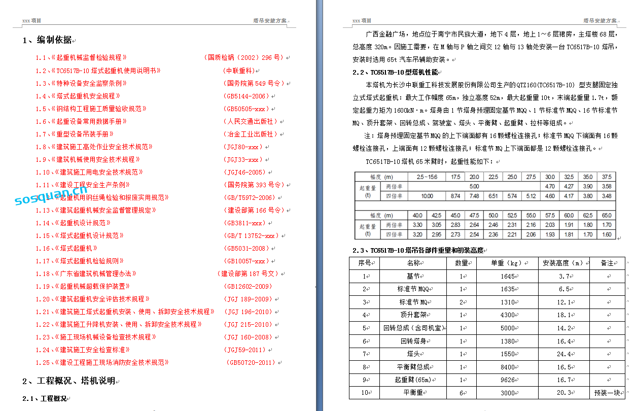 塔吊安装施工方案,WORD格式16篇,PDF格式6