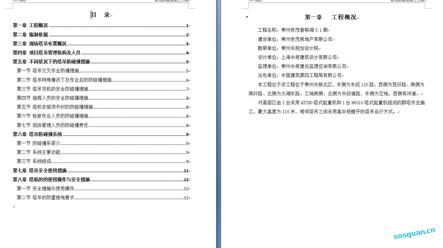塔吊防碰撞方案,WORD格式10篇,PDF格式1篇