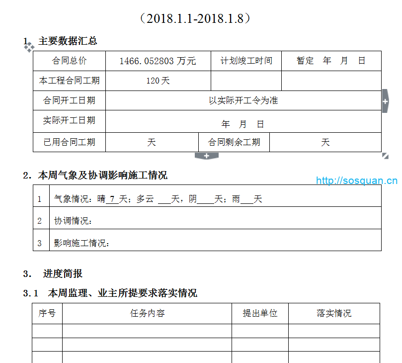 当前位置: 首页实用资料正文 施工周报模板 格式:doc <部分内容截图> 本文原件 ***此处内容登录后可见*** 温馨提示:此处为隐藏内容,需要登录后可见 登录查看 须知 1资料收集于互联网,站内视频、图文、文字仅供交流学习使用。如侵犯到您的合法权益,请联系本站处理。 在手机上访问本站时,仅可以浏览内容,如需下载资料,请在电脑浏览器输入网址:sosquan.cn进行访问下载,资料默认解压密码为1 2资料众多无法保证资料其适用性,资料实例用于参考学习,学会变通,万变不离其宗,省时省力,助你快速提升! 3由于本站收录资料众多,有个别资料可能出现重复,请悉知。 4如有问题及时联系QQ:806096373处理 收藏 链接