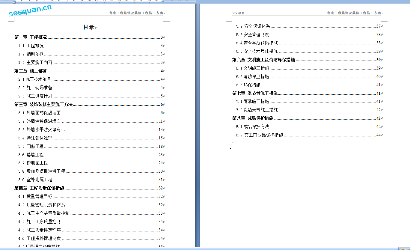当前位置: 首页方案大全技术方案正文 住宅工程装饰及装修工程施工方案,WORD格式1篇 打包下载:http://gczly1314.com/1977.html [wm_notice]部分内容截图[/wm_notice] 须知 1资料收集于互联网,站内视频、图文、文字仅供交流学习使用。如侵犯到您的合法权益,请联系本站处理。 在手机上访问本站时,仅可以浏览内容,如需下载资料,请在电脑浏览器输入网址:sosquan.cn进行访问下载,资料默认解压密码为1 2资料众多无法保证资料其适用性,资料实例用于参考学习,学会变通,万变不离其宗,省时省力,助你快速提升! 3由于本站收录资料众多,有个别资料可能出现重复,请悉知。 4如有问题及时联系QQ:806096373处理 方案施工装修 收藏 链接