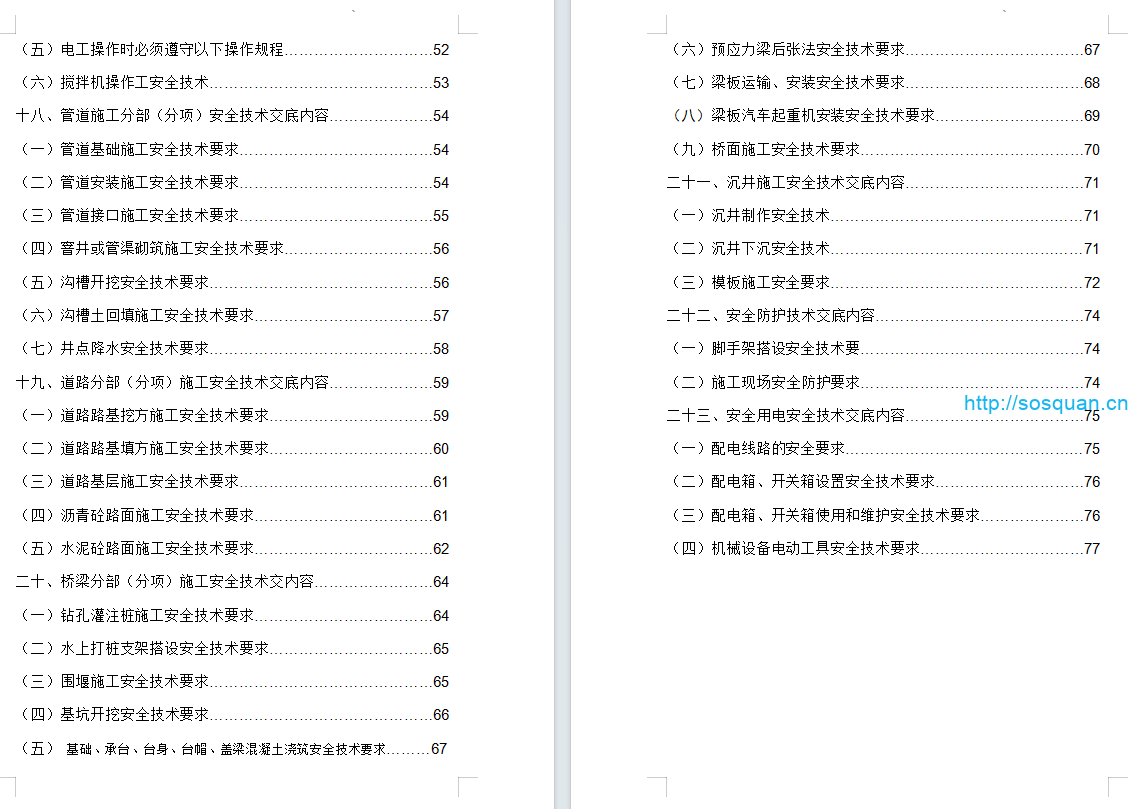 • 水泥砼路面施工安全技术要求………………………………62