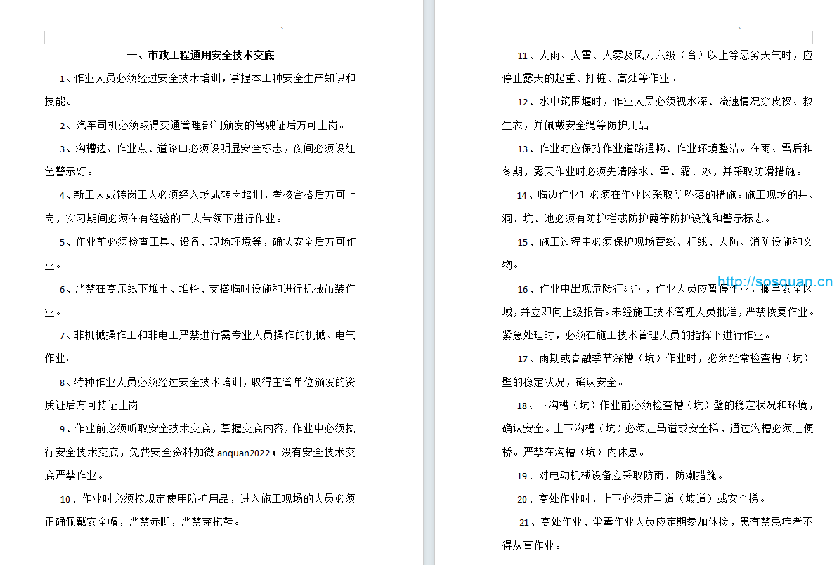 • 市政工程通用安全技术交底……………………………………1