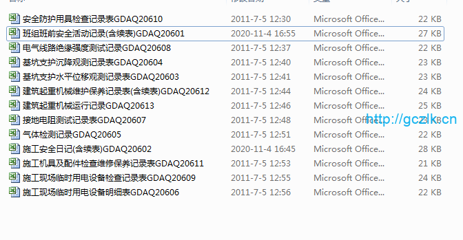 《广东省建筑施工安全管理资料统一用表 (2011年版)》一套EXCEL电子格式形式,如下截图:
