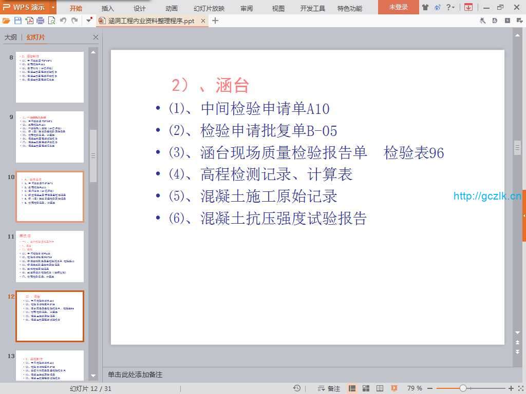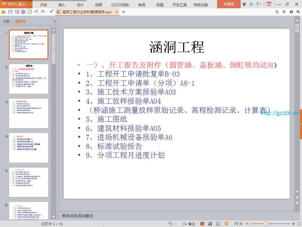当前位置: 首页实用资料正文 内容 :涵洞工程内业资料整理程序 格式 :PPT 页数 :31 解压密码 : 1 资料部分内容截图: 高清文档资料下载地址: 隐藏内容此处内容需要权限查看普通不可下载会员免费永久会员免费推荐暂无购买权限 须知 1资料收集于互联网,站内视频、图文、文字仅供交流学习使用。如侵犯到您的合法权益,请联系本站处理。 在手机上访问本站时,仅可以浏览内容,如需下载资料,请在电脑浏览器输入网址:sosquan.cn进行访问下载,资料默认解压密码为1 2资料众多无法保证资料其适用性,资料实例用于参考学习,学会变通,万变不离其宗,省时省力,助你快速提升! 3由于本站收录资料众多,有个别资料可能出现重复,请悉知。 4如有问题及时联系QQ:806096373处理 内业涵洞资料 收藏 链接