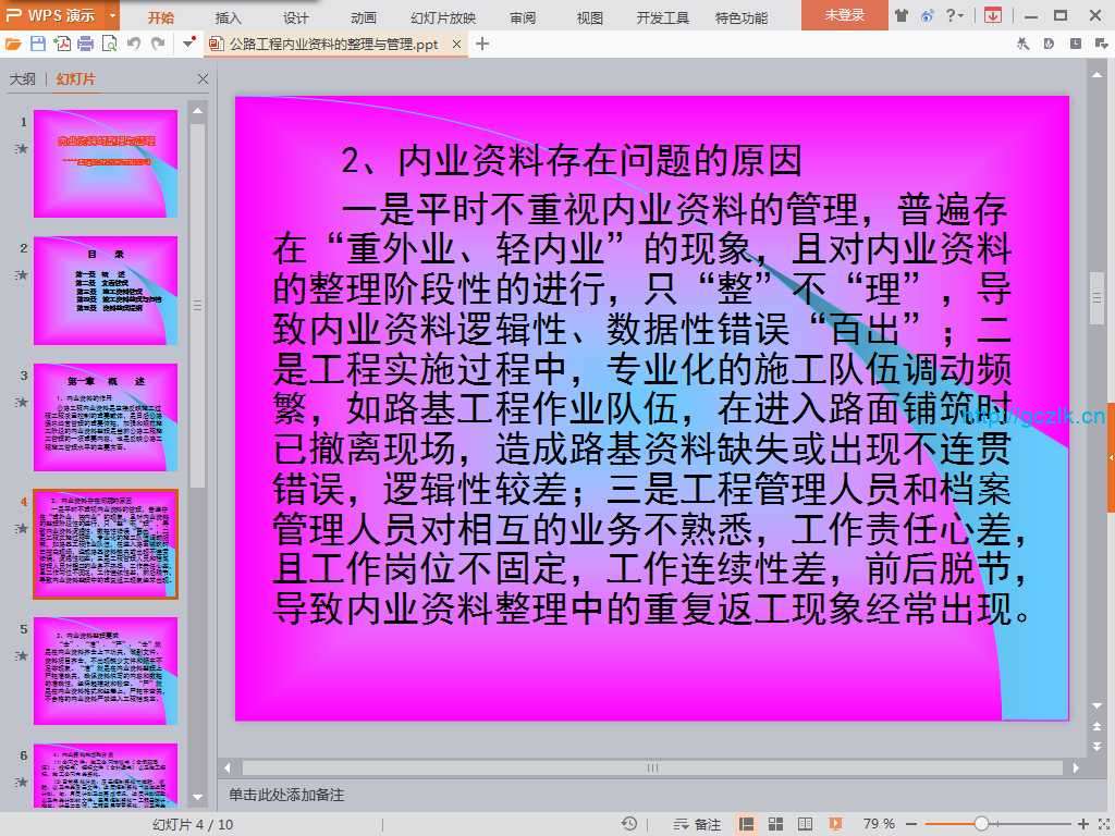 当前位置: 首页实用资料正文 内容 :公路工程内业资料的整理与管理 格式 :PPT 页数 :10 解压密码 : 1 资料部分内容截图: 高清文档资料下载地址: 隐藏内容此处内容需要权限查看普通不可下载会员免费永久会员免费推荐暂无购买权限 须知 1资料收集于互联网,站内视频、图文、文字仅供交流学习使用。如侵犯到您的合法权益,请联系本站处理。 在手机上访问本站时,仅可以浏览内容,如需下载资料,请在电脑浏览器输入网址:sosquan.cn进行访问下载,资料默认解压密码为1 2资料众多无法保证资料其适用性,资料实例用于参考学习,学会变通,万变不离其宗,省时省力,助你快速提升! 3由于本站收录资料众多,有个别资料可能出现重复,请悉知。 4如有问题及时联系QQ:806096373处理 内业 收藏 链接