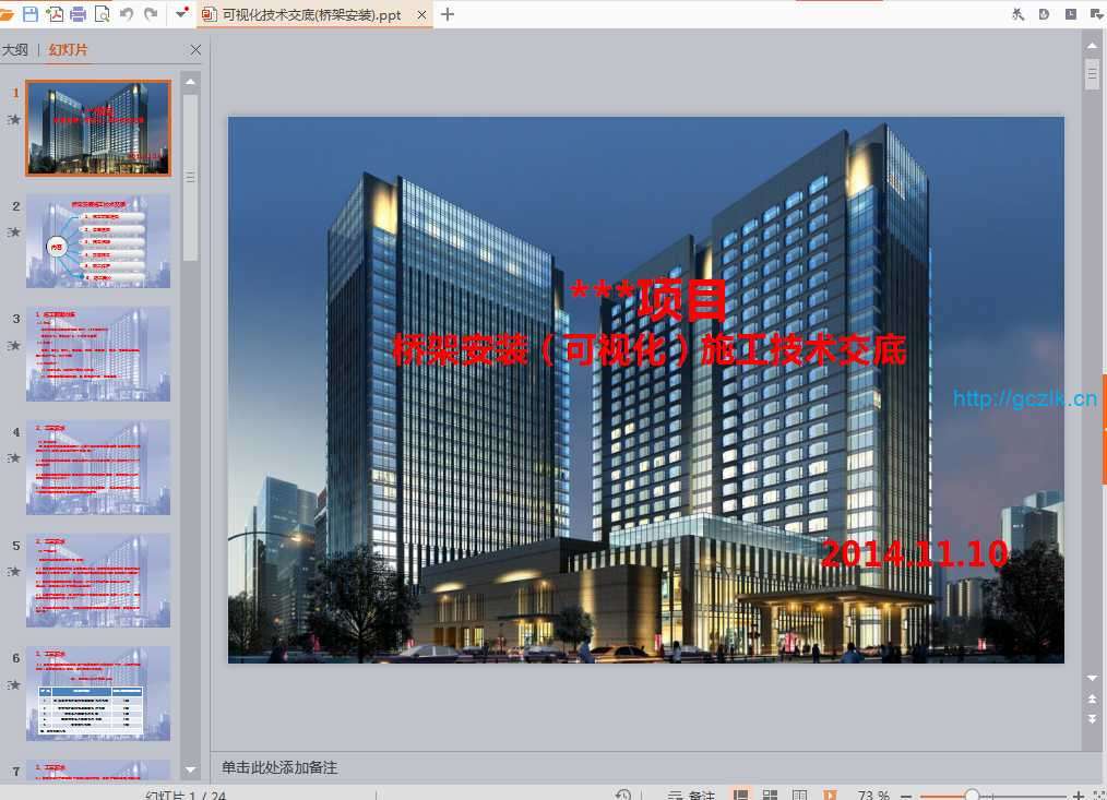 • 内容 :可视化技术交底(桥架安装)
