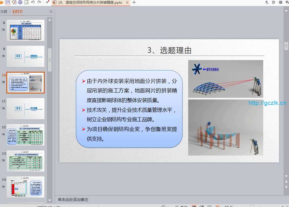 当前位置: 首页创优QC正文 内容 :提高空间球形网壳分片拼装精度 格式 :PPT 页数 :49 解压密码 :1 资料部分内容截图: 须知 1资料收集于互联网,站内视频、图文、文字仅供交流学习使用。如侵犯到您的合法权益,请联系本站处理。 在手机上访问本站时,仅可以浏览内容,如需下载资料,请在电脑浏览器输入网址:sosquan.cn进行访问下载,资料默认解压密码为1 2资料众多无法保证资料其适用性,资料实例用于参考学习,学会变通,万变不离其宗,省时省力,助你快速提升! 3由于本站收录资料众多,有个别资料可能出现重复,请悉知。 4如有问题及时联系QQ:806096373处理 收藏 链接
