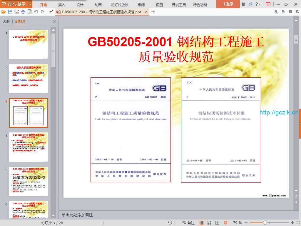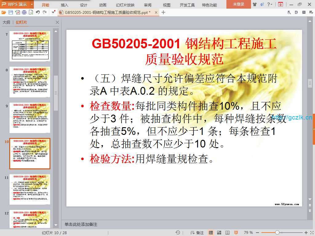 当前位置: 首页图解工艺解读正文 内容 :GB50205-2001-钢结构工程施工质量验收规范 格式 :PPT 页数 :28 解压密码 : 1 资料部分内容截图: GB50205-2001-钢结构工程施工质量验收规范 须知 1资料收集于互联网,站内视频、图文、文字仅供交流学习使用。如侵犯到您的合法权益,请联系本站处理。 在手机上访问本站时,仅可以浏览内容,如需下载资料,请在电脑浏览器输入网址:sosquan.cn进行访问下载,资料默认解压密码为1 2资料众多无法保证资料其适用性,资料实例用于参考学习,学会变通,万变不离其宗,省时省力,助你快速提升! 3由于本站收录资料众多,有个别资料可能出现重复,请悉知。 4如有问题及时联系QQ:806096373处理 施工规范质量 收藏 链接