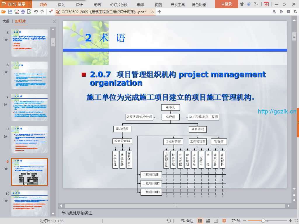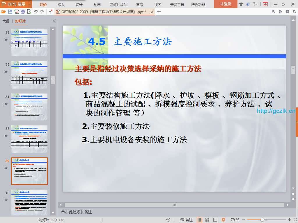 • 内容 :GBT50502-2009《建筑工程施工组织设计规范》