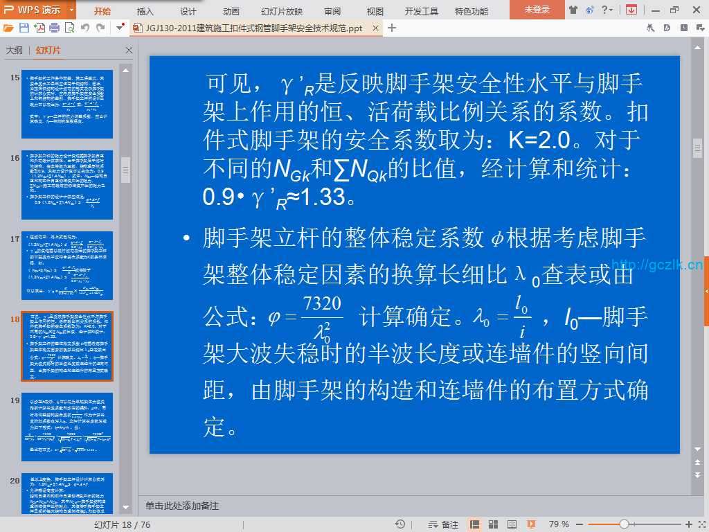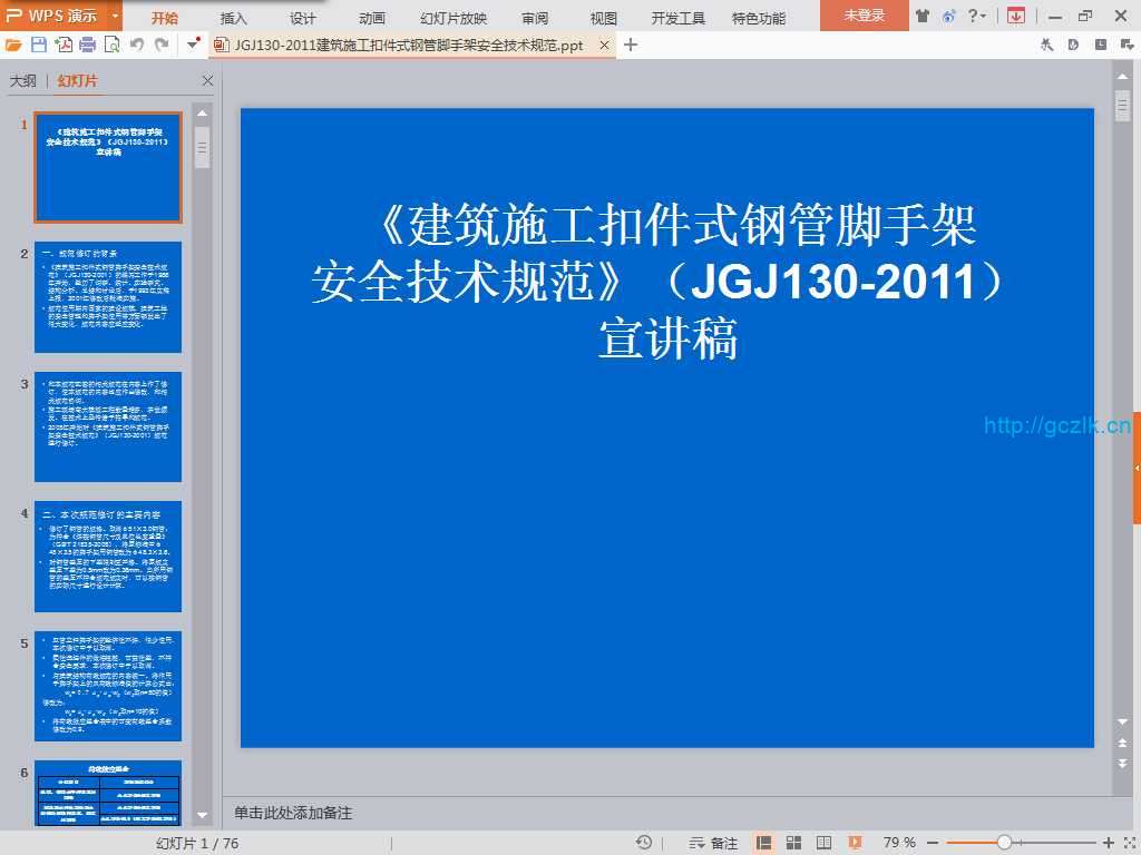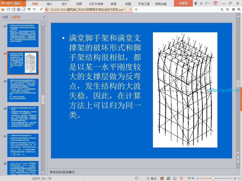 当前位置: 首页图解工艺解读正文 内容 :JGJ130-2011建筑施工扣件式钢管脚手架安全技术规范 格式 :PPT 页数 :76 解压密码 :1 资料部分内容截图: JGJ130-2011建筑施工扣件式钢管脚手架安全技术规范 须知 1资料收集于互联网,站内视频、图文、文字仅供交流学习使用。如侵犯到您的合法权益,请联系本站处理。 在手机上访问本站时,仅可以浏览内容,如需下载资料,请在电脑浏览器输入网址:sosquan.cn进行访问下载,资料默认解压密码为1 2资料众多无法保证资料其适用性,资料实例用于参考学习,学会变通,万变不离其宗,省时省力,助你快速提升! 3由于本站收录资料众多,有个别资料可能出现重复,请悉知。 4如有问题及时联系QQ:806096373处理 安全施工规范 收藏 链接