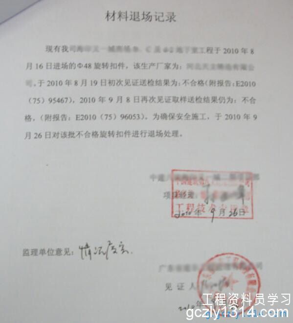 材料送检不合格的处理方法: